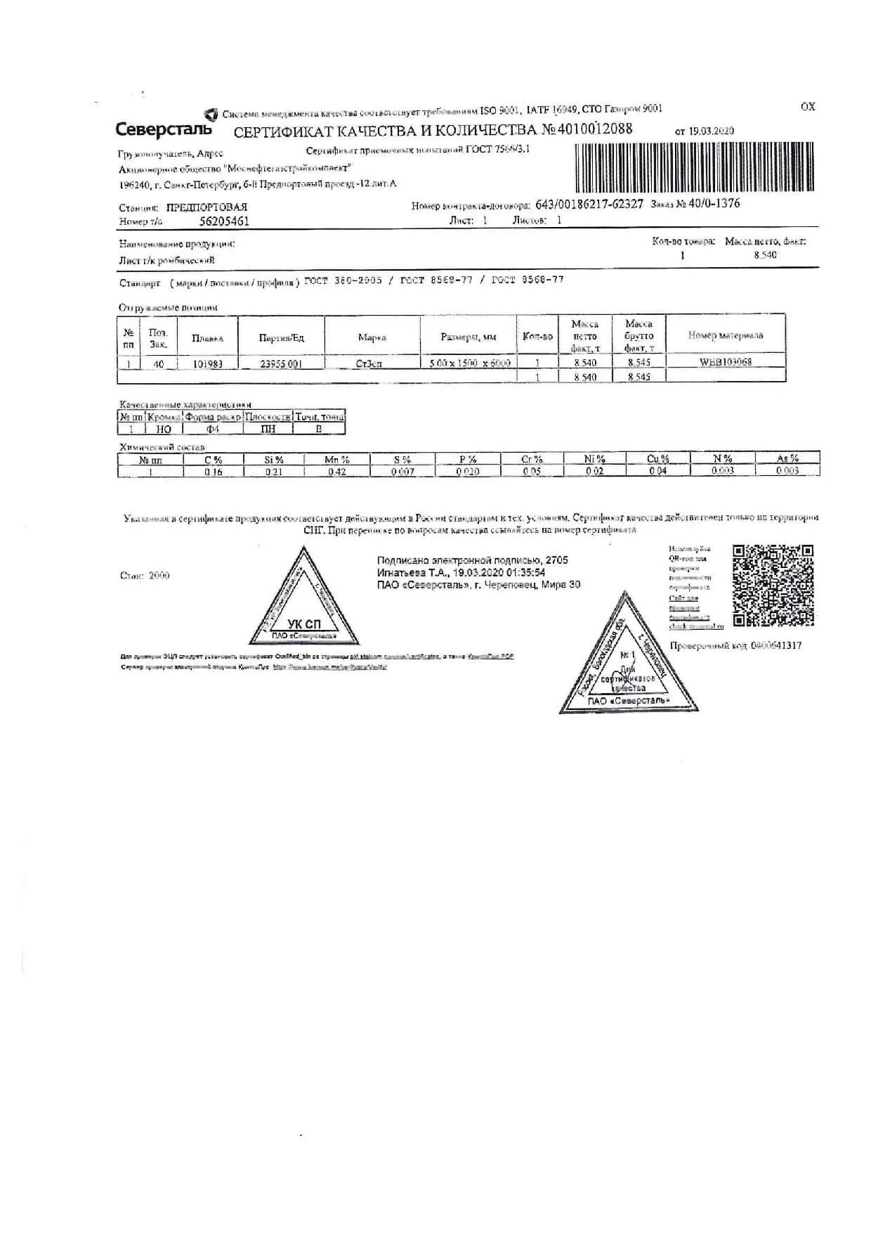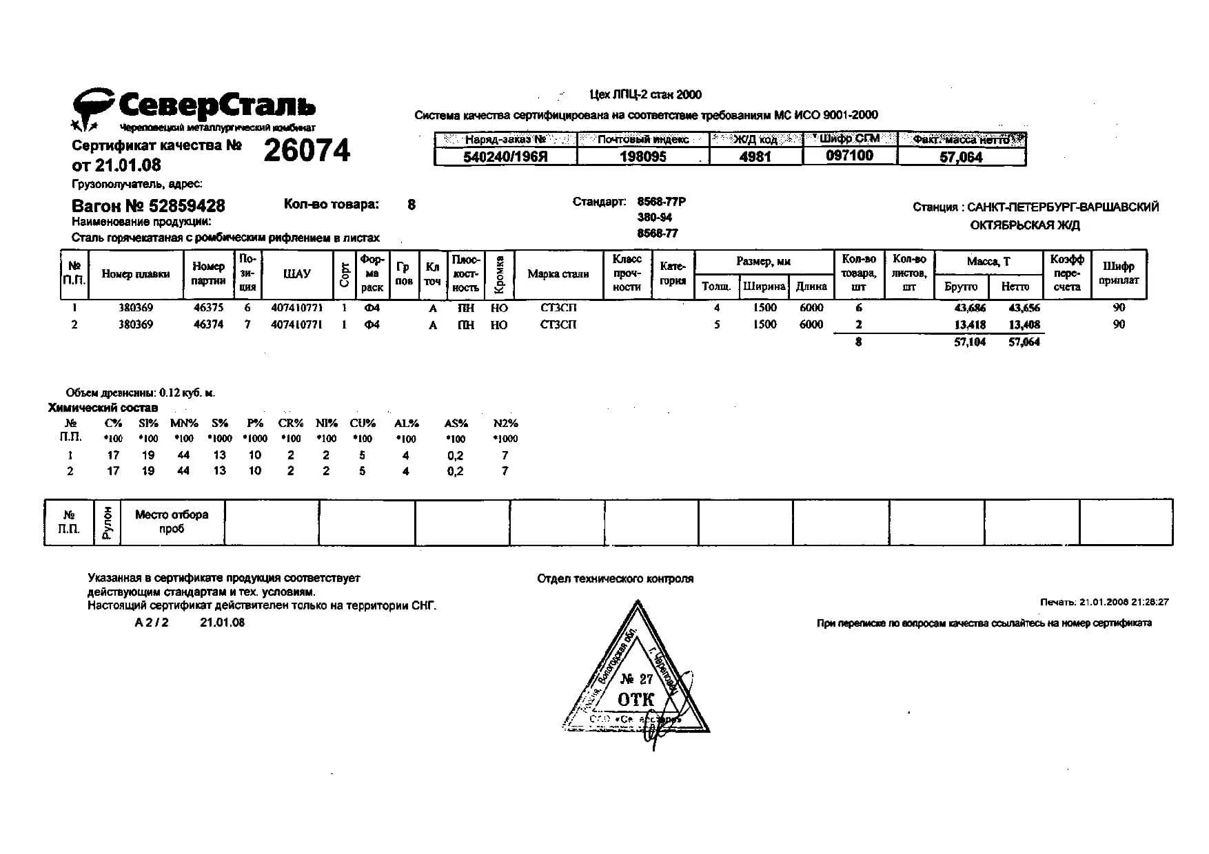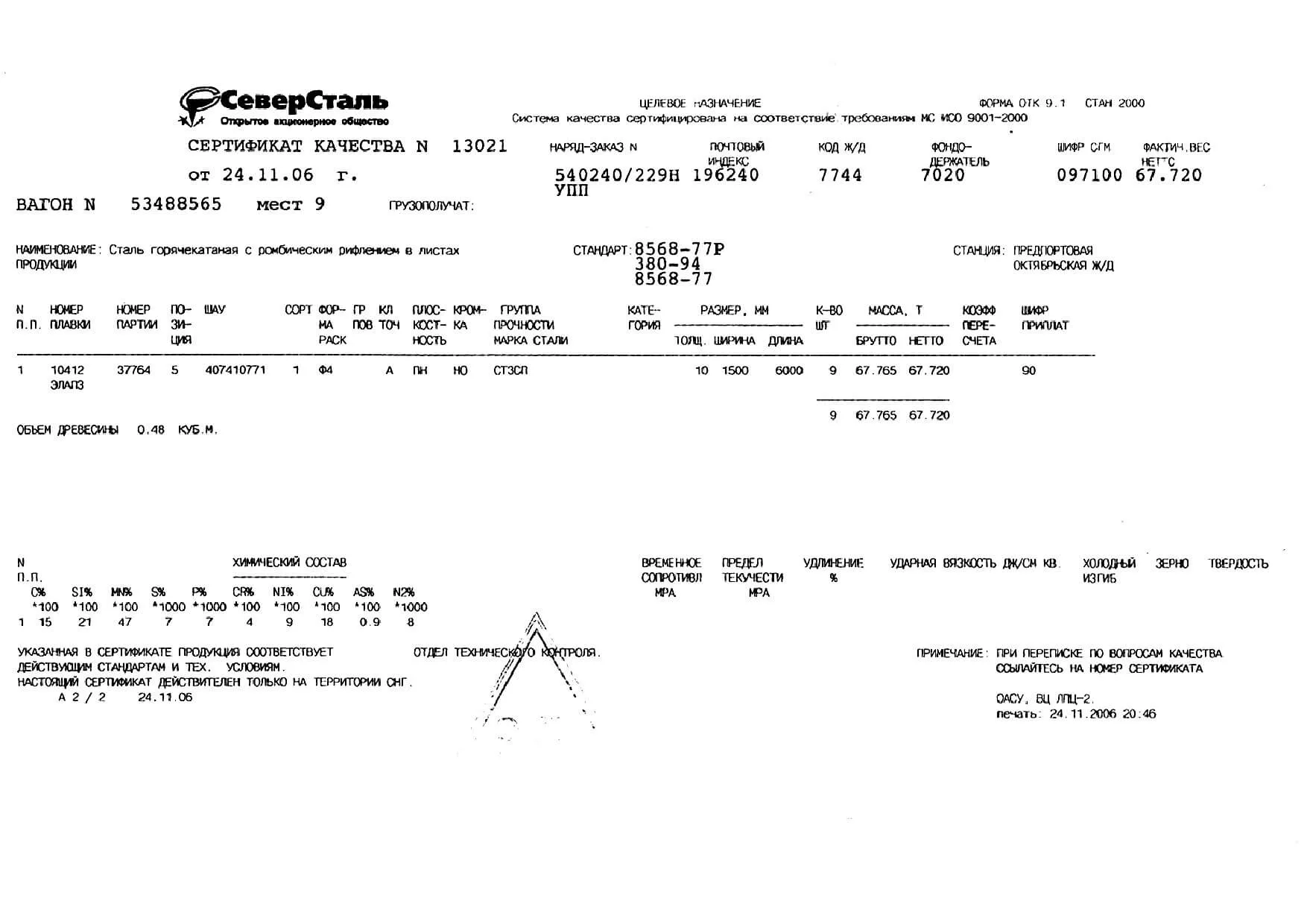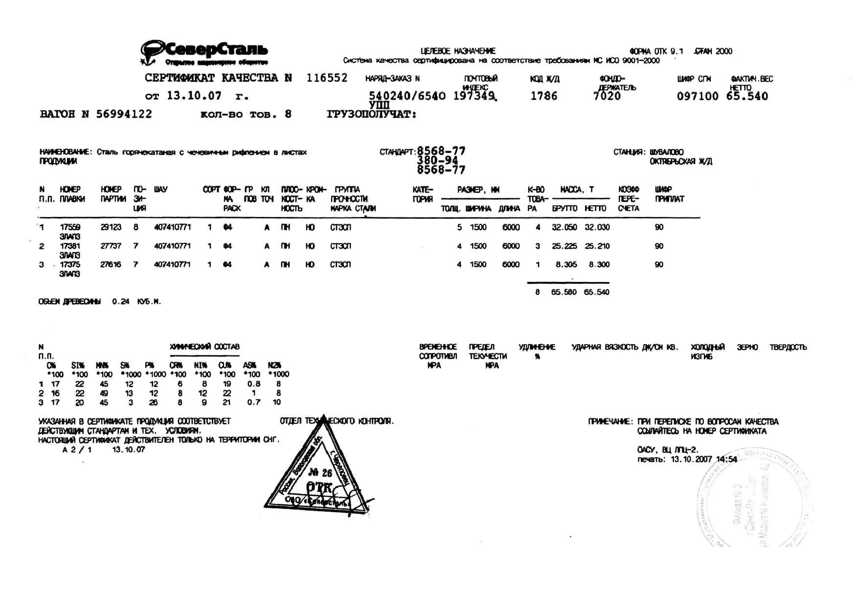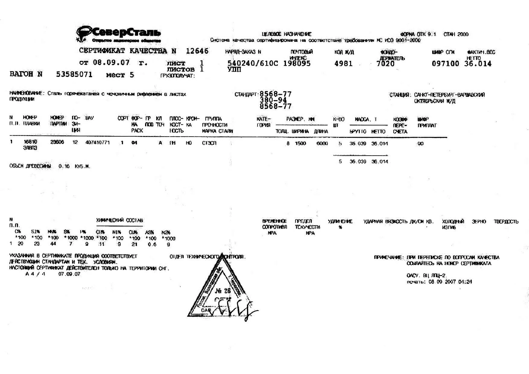 Сертификаты на лист рифленый